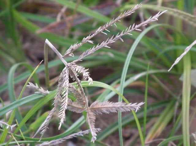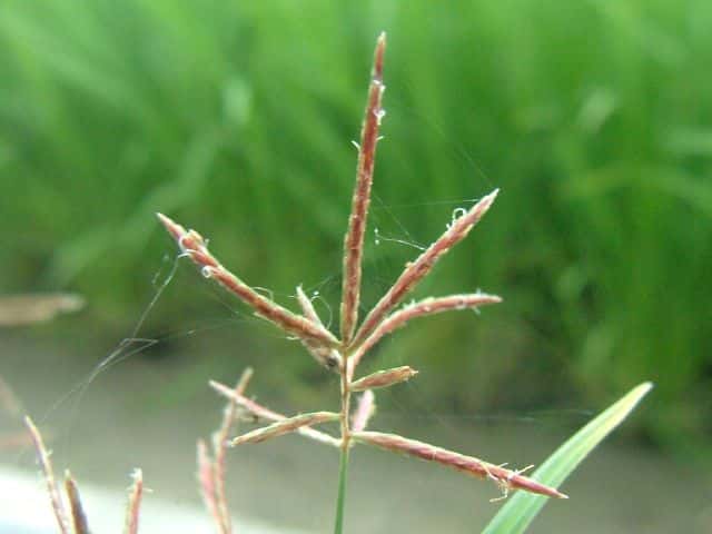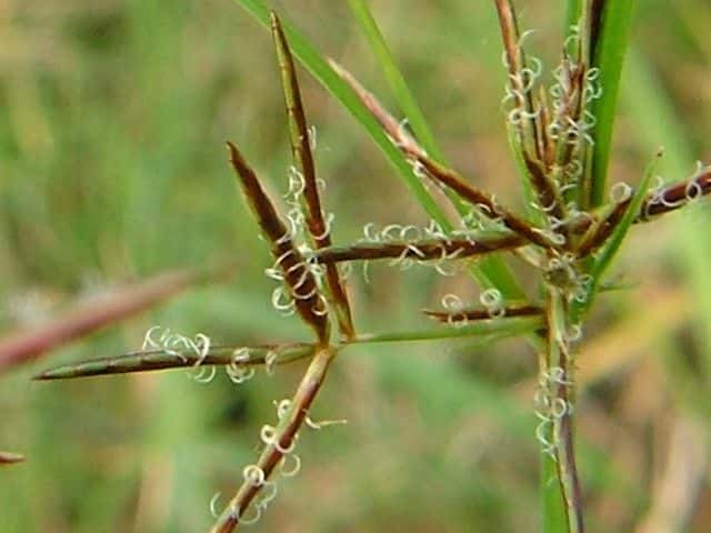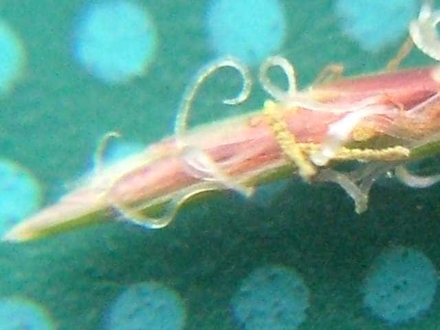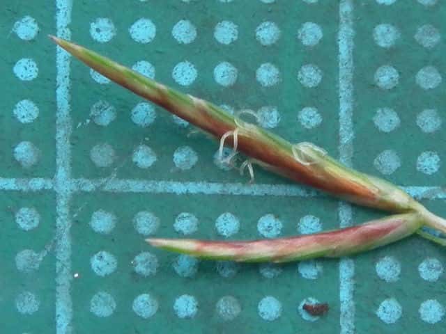 | ▼小穂は長さ約1.4cm。 | ▼柱頭は3岐する。 | |