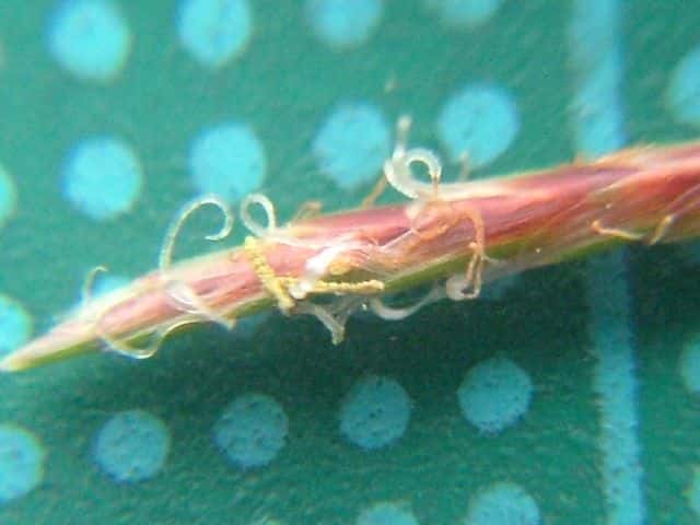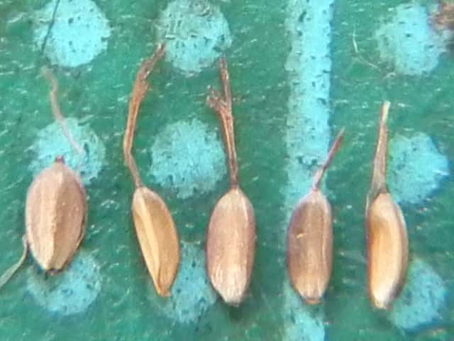 | ▼2012年9月11日 玉湯 | ▼小穂は線形で、軸に斜開してつく。 | |