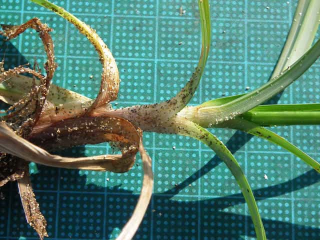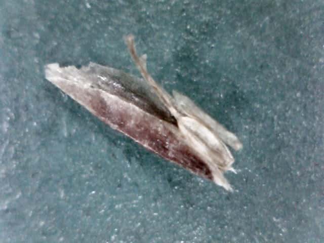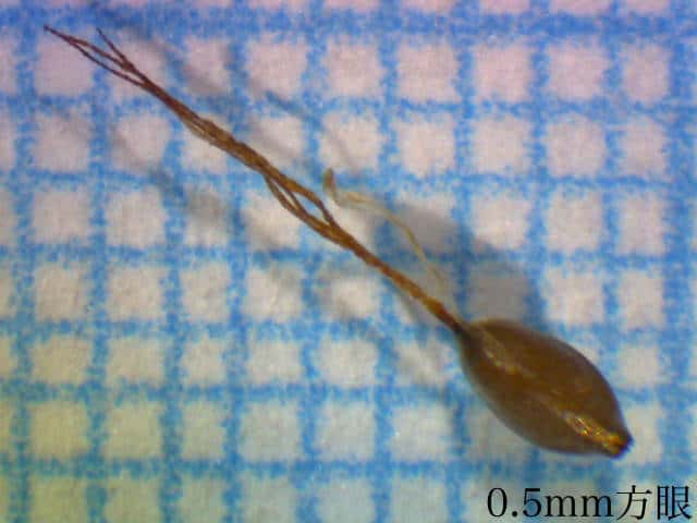 | ▼果実は3稜形、長さ約1.5mm。 | ▼表面に微細な網目模様がある。 | ▼茎は長さ約25cm。 |