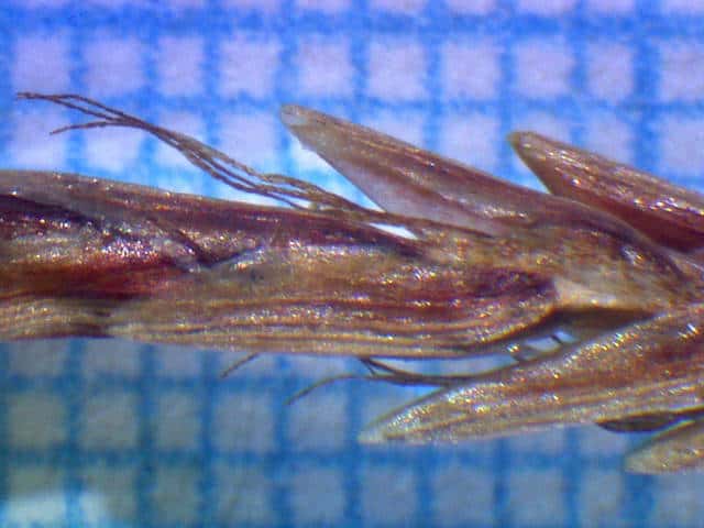 | ▼小穂は長さ約1.5cm。 | ▼鱗片の先は鈍頭。 | |