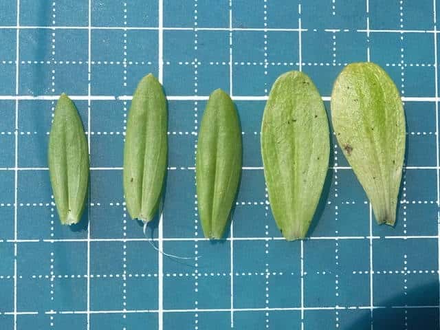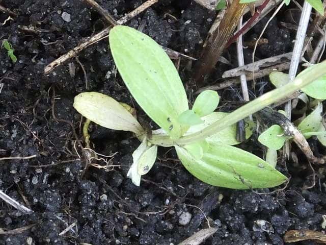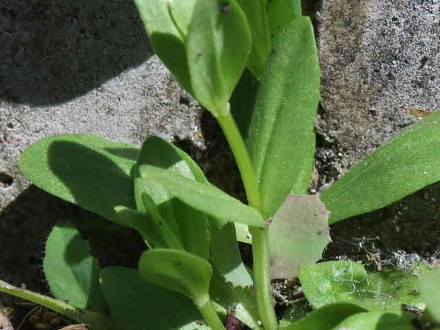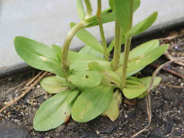 | ▼葉は長さ2〜2.5cm。 | ▼根生葉が残っている。 | |