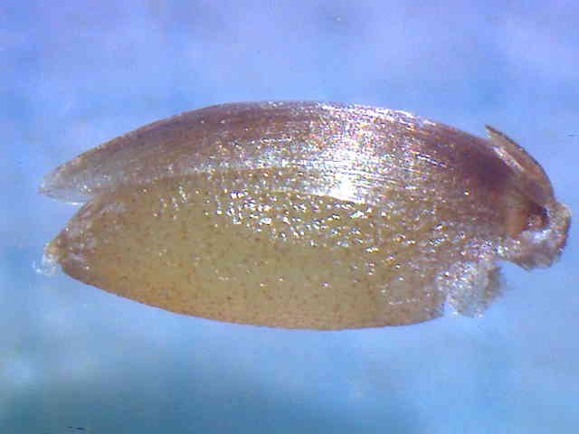 | ▼第2小花の護穎に包まれた果実。 | ▼内穎と護穎に包まれた果実。 | ▼護穎を取り除いた果実。 |