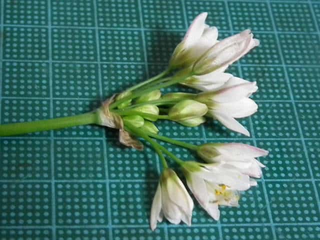 | 多年草 北アメリカ原産。明治年間の中頃に渡来したとされ、関東地方以西に帰化している。地下に直径1cmほどの鱗茎があり、長さ30cmほどの線形で柔らかい葉を数枚出す。長さ50cmほどの花茎をのばし、直径1.5cmほどの白色で淡紅色の脈の入った6弁の花を房状につける。種子は長さ2mmほどで黒色。ニラ臭はない。花期は春〜夏。(日本帰化植物写真図鑑) 学名は、Nothoscordum gracile ヒガンバナ科ハタケニラ属 |