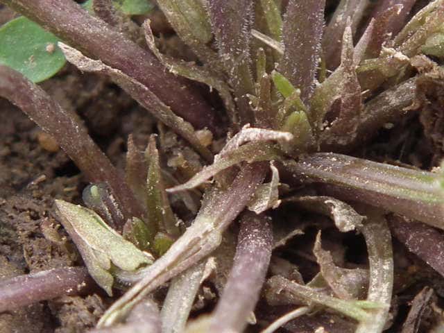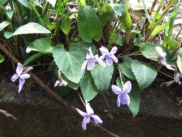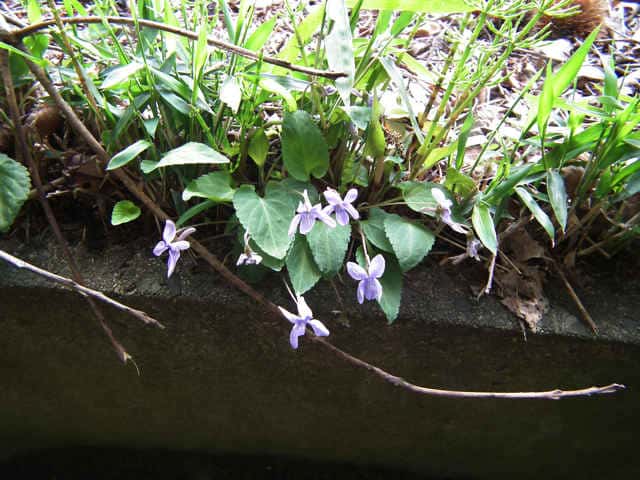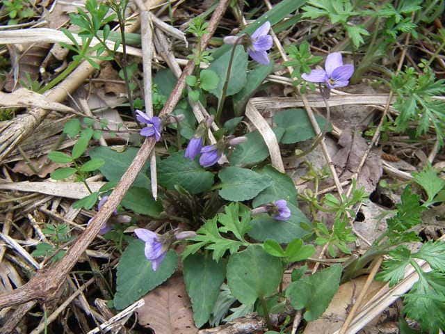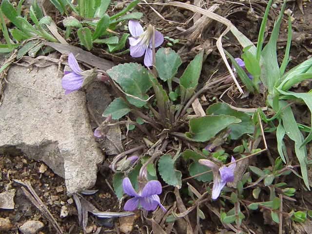 | 多年草 本州〜九州の人家近くや山野に生える。高さ6〜12cmになる。葉は数多く束生し、花期には長さ2〜5cmの長卵形で先はとがる。裏面は淡紫色を帯びる。夏の葉は三角形で大きい。花は白っぽいものから淡紅色まで変化が多い。花弁は長さ1〜1.5cmで幅が狭く、紫色のすじが目立つ。側弁はふつう無毛だが、ときに毛のあるものもある。柱頭はカマキリ型。距は長さ6〜8mmで細長い。距に毛が散生するものもある。コスミレは変異が多く、葉に毛があって、ノジスミレに似ているものや、花の色が紅紫色でアカネスミレに似ているものもある。花期は3〜4月。(野に咲く花) 学名は、Viola japonica f. barbata スミレ科スミレ属 側弁の無毛のものをコスミレといい、関東に多い。 コスミレ(ヒゲコスミレ)の白花品種をシロバナツクシコスミレという。 スミレの分類 |