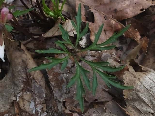 | ▼距は太い。 | ▼葉は5全裂状。 | |