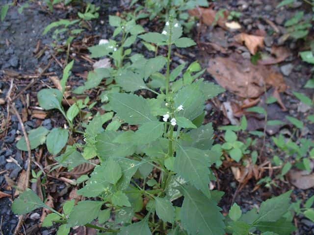 | 1年草 北海道〜九州の山野の湿った林縁や道端に生える。高さ10〜60cm。茎は四角形で稜には下向きに曲がった短毛があり、節にも白い毛が生える。葉は対生し、長さ2〜4cmの卵形〜広卵形。粗い鋸歯があり、裏面には腺点がある。枝先に長さ3〜7cmの花穂をだし、白〜淡紅紫色の小さな唇形花をややまばらにつける。花冠は長さ2〜4mmで、筒部は短く、上唇は3裂、下唇は先端がへこむ。萼は長さ2〜3mmで、上唇は3裂、下唇は2裂する。上唇の裂片の先はあまりとがらない。花期は9〜10月 学名は、Mosla dianthera シソ科イヌコウジュ属 イヌコウジュによく似るが、葉が菱形になり、葉のきよ歯は4〜6対、がくの先は鈍く、花軸には毛が少ないことで区別される。 似た花の区別 ヒメジソに似て毛が多いシラゲヒメジソがあり、専門家によっては、ヒメジソは変異が大きく、シラゲヒメジソと区別できないとの見解もある。 |
