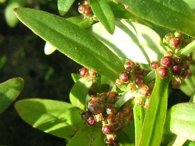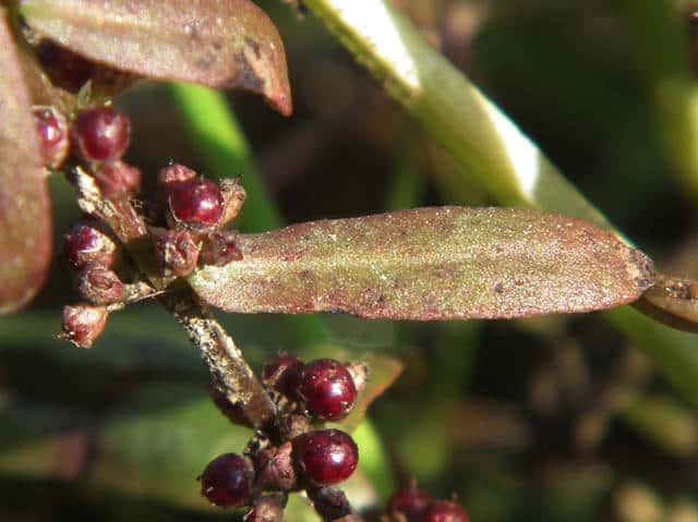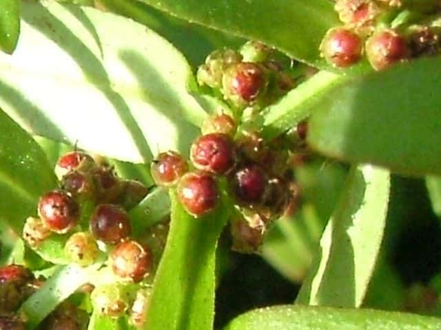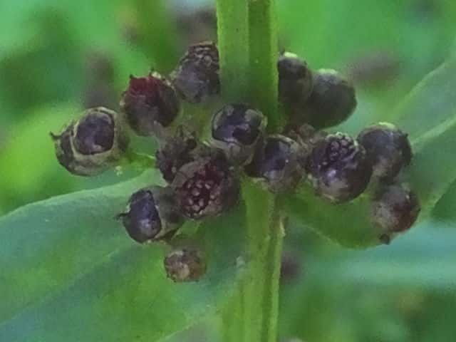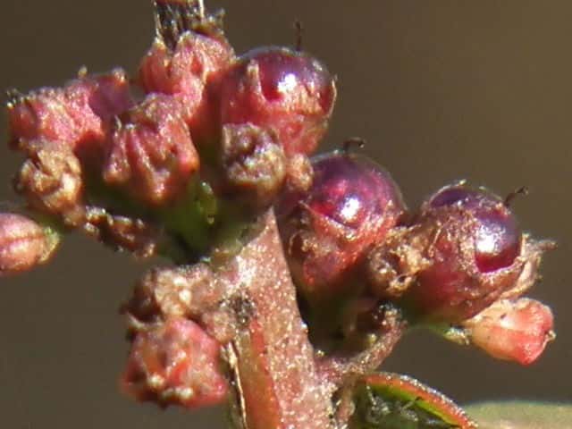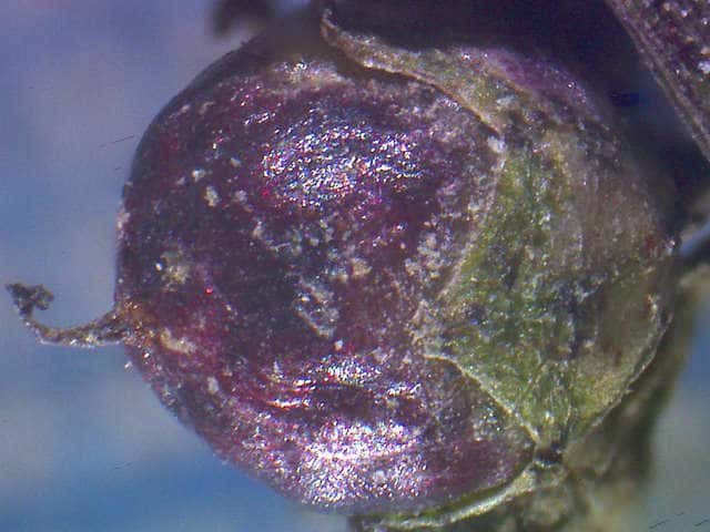 | ▼果実は直径約2mm。 | ▼果実の下半部を萼が包む。 | |