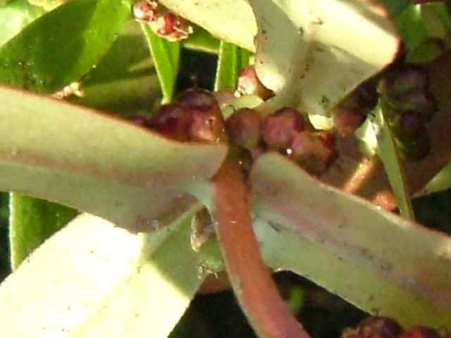 | ▼葉の基部を裏側から。 | ||