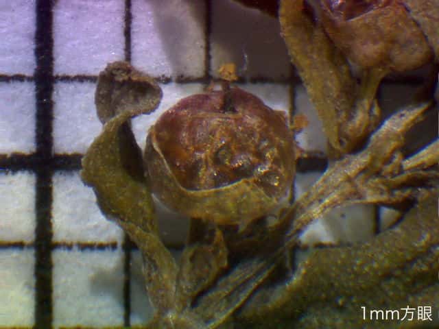 | ▼果実は直径約1.6mm。 | ▼種子は長さ約0.5mm。 | |