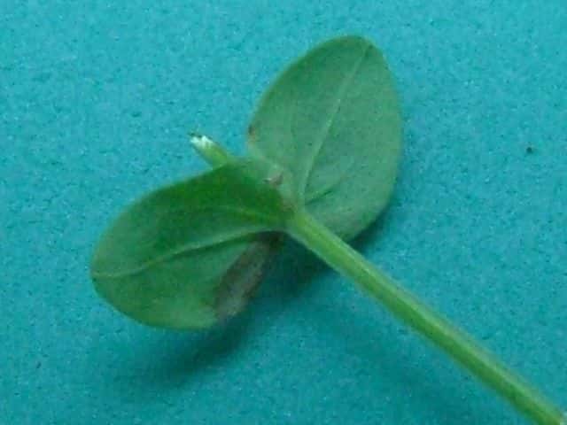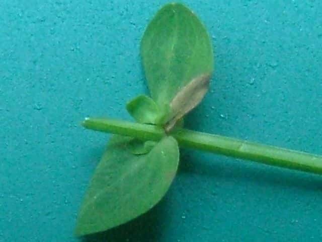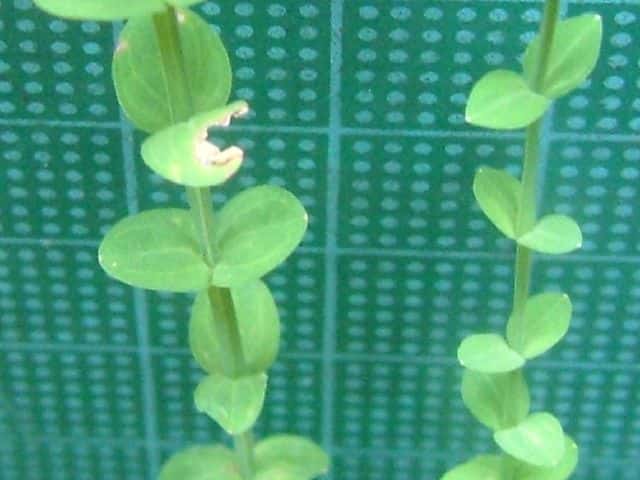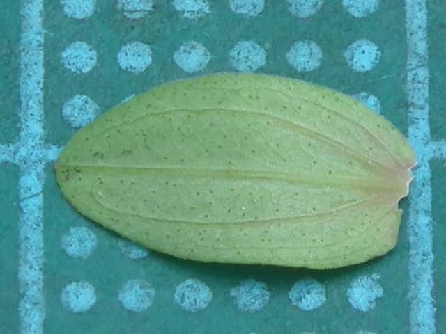 | ▼葉は卵形で、長さ約1cm。 | ▼葉には黒点はなく、明点がある。 | |