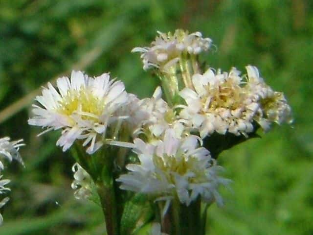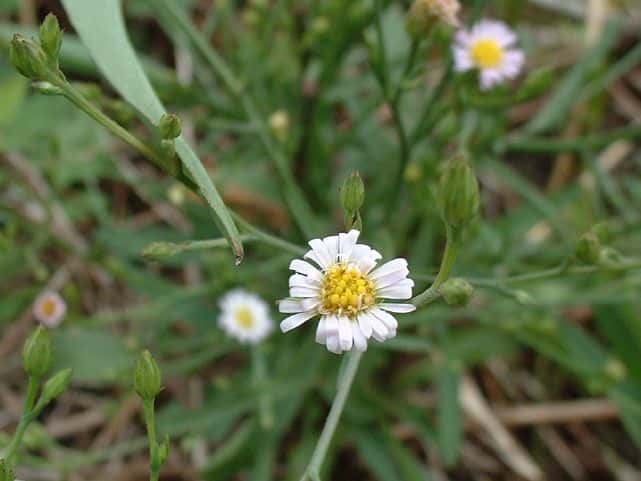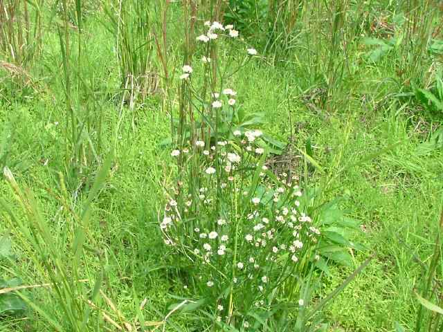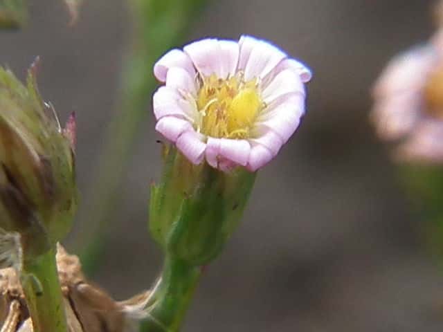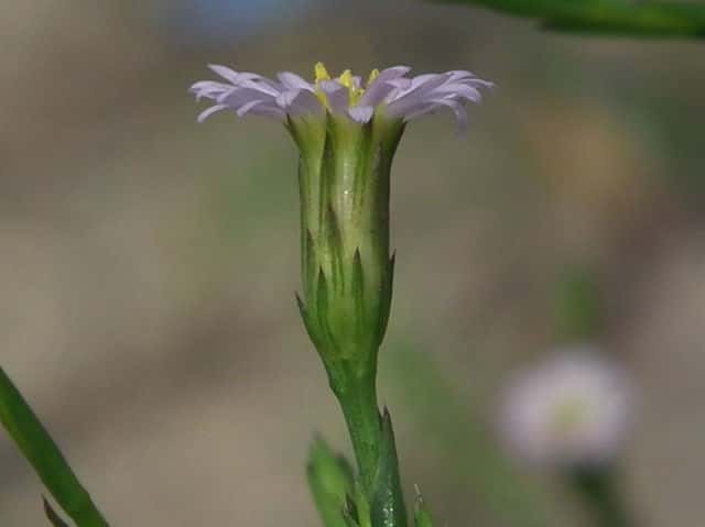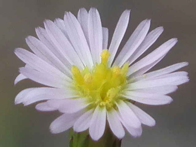 | 1年草 北アメリカ原産で、ホウキギクの基本種。1960年代に北九州で気づかれ、現在では本州の中部以西の各地に広がり、ところによってはホウキギクより多い。ホウキギクに似ているが、枝が横に広がり、頭花は直径7〜9mmと大きく、葉は幅が広く、先端がとがり、基部は茎を抱かない。冠毛は筒状花より短い。花期は8〜10月。(野に咲く花) 学名は、Symphyotrichum subulatum var. squamatum キク科ホウキギク属 よく似たホウキギクは次の点で区別される。 ・ヒロハの特徴として、 1 頭花の直径は、7〜9mm。(ホウキは5〜6mm) 2 葉の幅は0.8-2.5cm。(ホウキは0.5〜1.0cm) 3 花序の枝は60°〜90°(ホウキは30°〜60°)で出開。 4 ヒロハは筒状花の冠毛が花筒より短い。 他に花が1cm以上あるオオホウキギクがある。 |