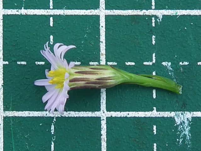 | ▼総苞の長さ約6mm。 | ▼花は直径約8mm、冠毛は目立たない。 | |