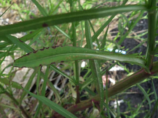 | ▼葉の基部はやや茎を抱く。 | ||