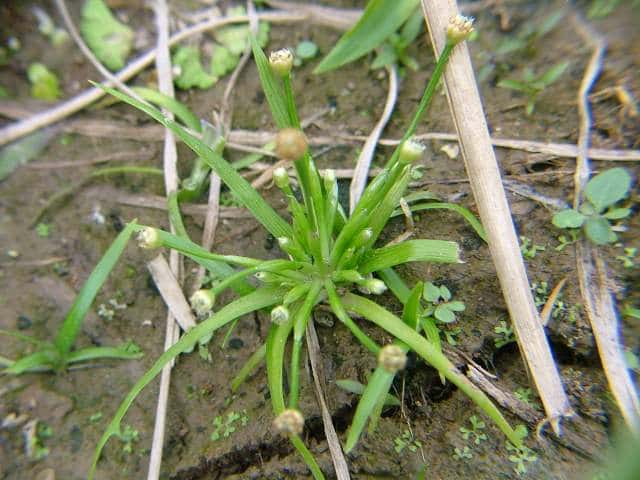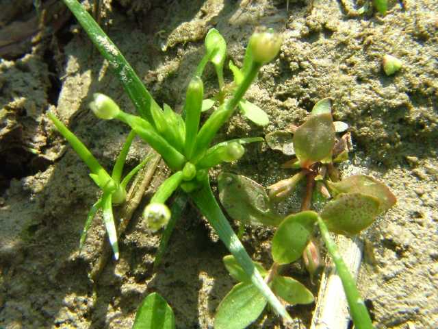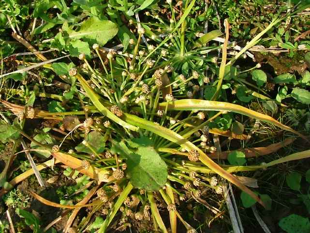 | 1年草 北海道〜九州の水田や湿地に生える。葉は多数根生して開出し、長さ9〜20cm、基部で幅5〜8(10)mm、先は次第に細くなってやや鈍頭。花茎は多数出て高さ4〜25cm、5肋があって少しねじれる。頭花は多数の花からなり淡汚褐色、半球形〜やや倒円錐形、幅4〜5mm。総苞片は卵状長楕円形、長さ2〜2.5mm、鈍頭、乾けば淡黄褐色。花床は通常無毛。雄花は長さ1.5〜1.8mm、萼片は合生して倒卵状、前方は深く裂け、上部は3浅裂、無毛またはわずかに短毛がある。花弁は筒状に筒状に合生、雄しべ6、葯は黒色。雌花は長さ約2mm、萼片は合生して前方開き、淡褐色を帯び、内面は有毛、先は3浅裂し無毛またはわずかに短毛がある。花弁は3、離生、長楕円状披針形で内面有毛。柱頭は3。種子は長楕円形、長さ0.8mm、細鈎状毛がある。花期は9〜10月。別名ヒロハイヌノヒゲ。(原色日本植物図鑑) 学名は、Eriocaulon alpestre ホシクサ科ホシクサ属 |