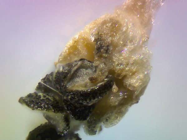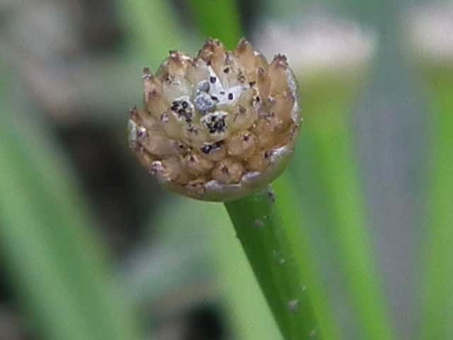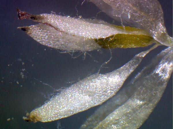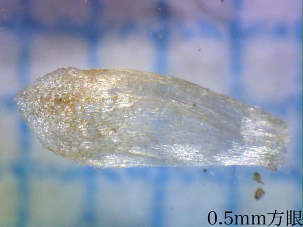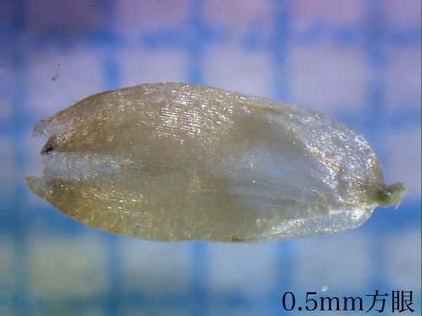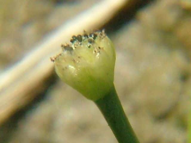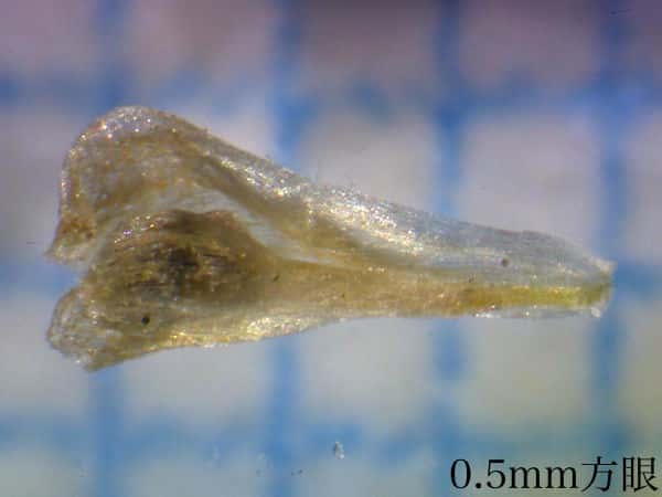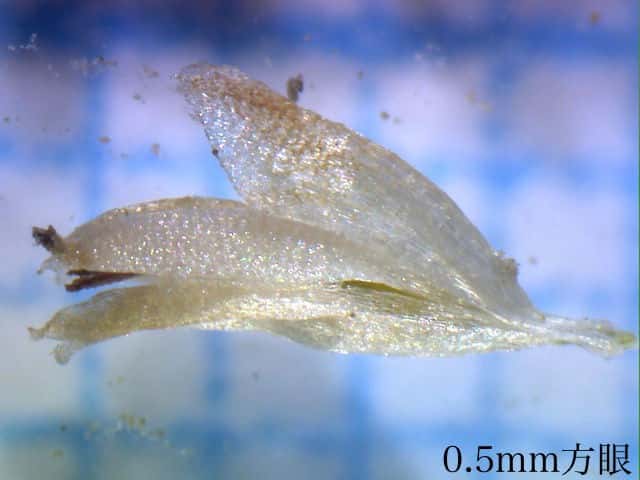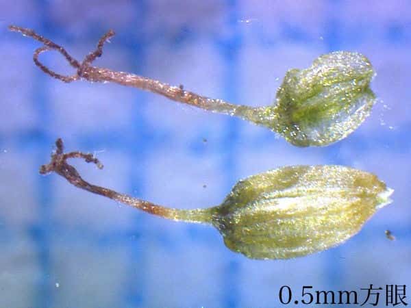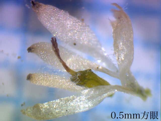 | ▼花苞は長さ約2mm。 | ▼花苞(上)と萼に包まれた雄花。 | ▼花苞(上)と萼に包まれた雄花。 |