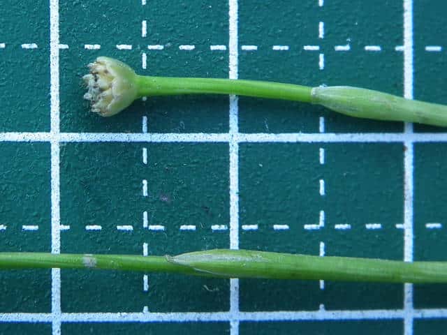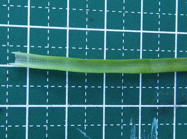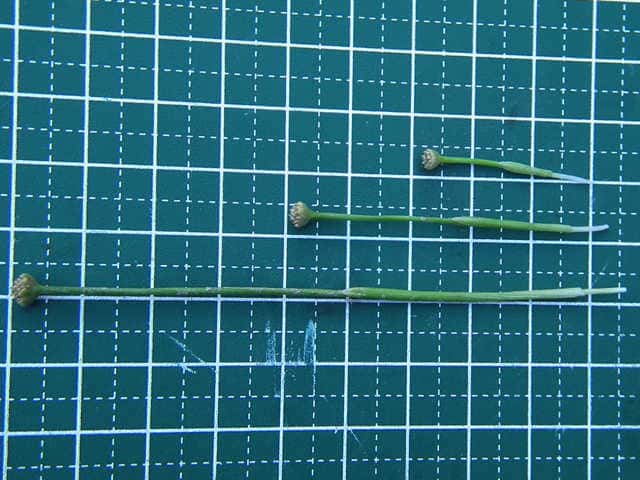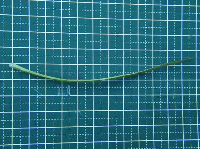| ▼花茎に筒状の鞘がある。 | ▼長い茎は約9cm。 | ▼葉は長さ約12cm。 |