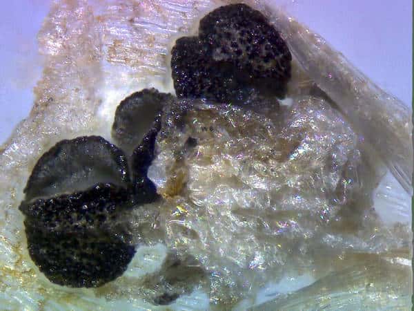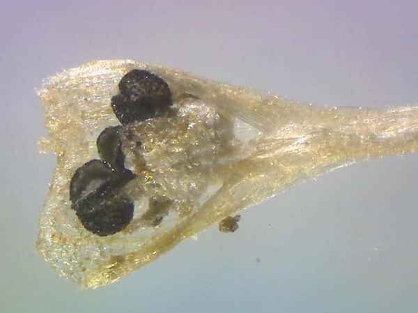 | ▼雄しべの葯は黒色、円形。 | ▼未熟な果実、柱頭は3岐する。 | |