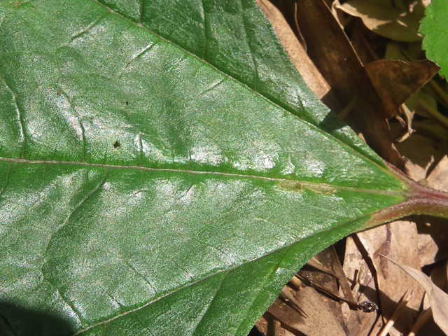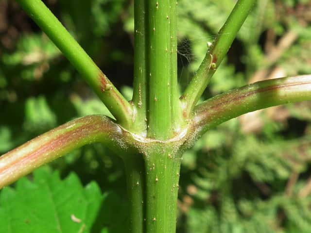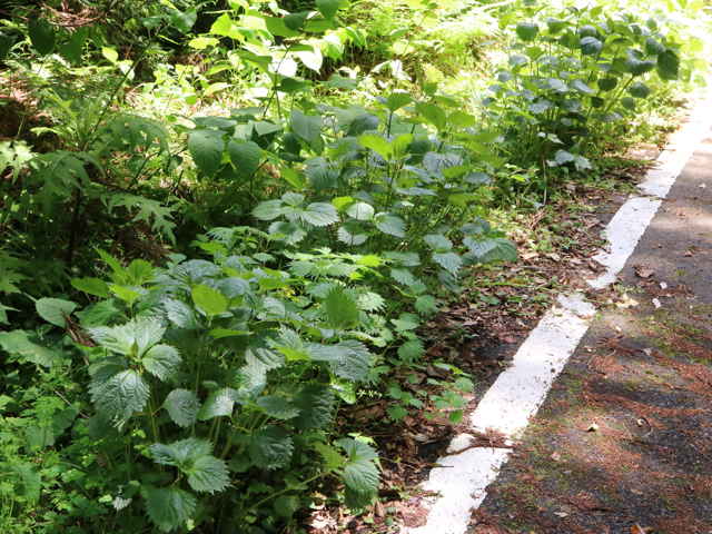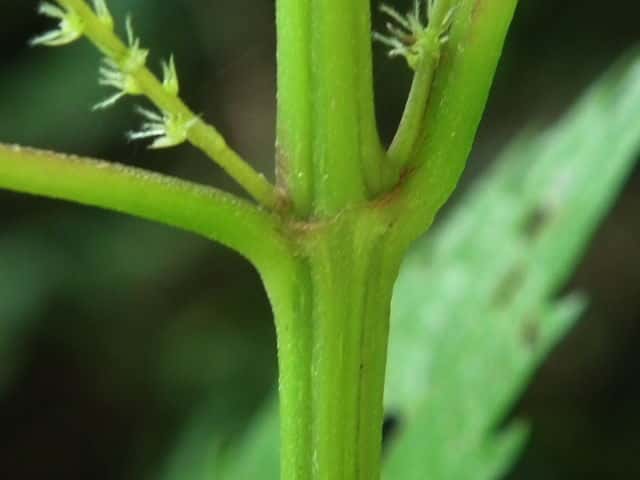| ▼片側16個の鋸歯がある。 | ▼中部の葉はおおむね幅が11cm。 | ▼茎は稜があり無毛。 |