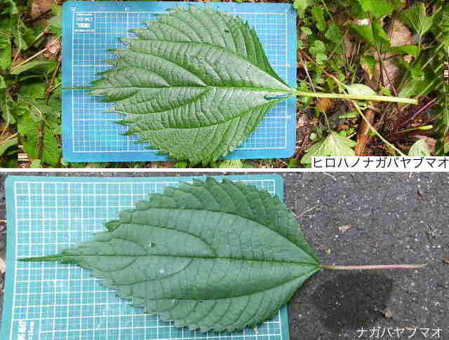 | ▼ナガバヤブマオとの葉の比較。 | ||