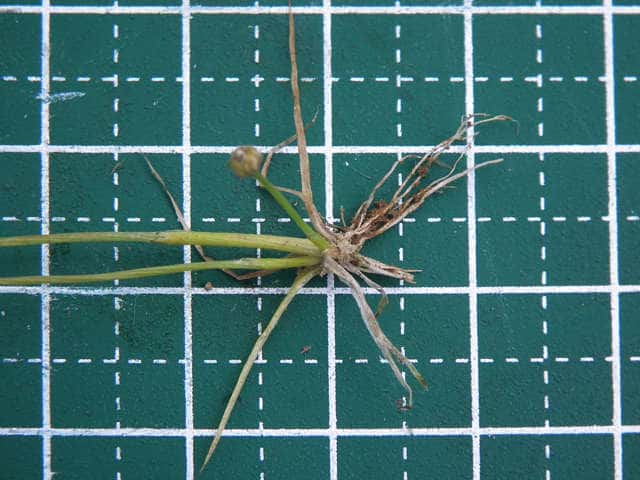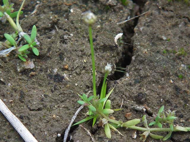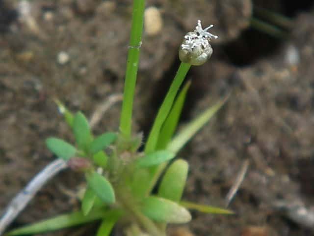 | ▼花茎は高さ約6cm。 | ▼葉は線形で根生する。 | |