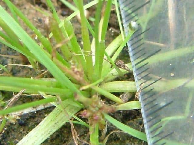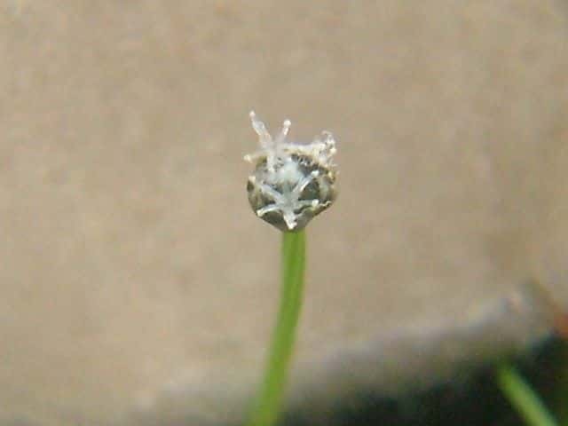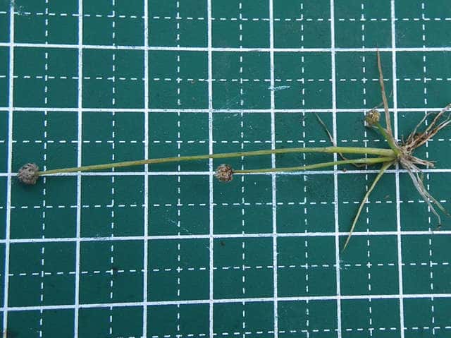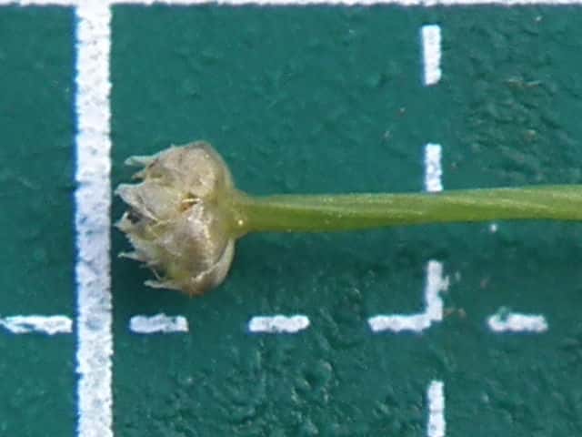 | ▼花茎は高さ約7cm。 | ▼葉の幅は約2mm。 | |