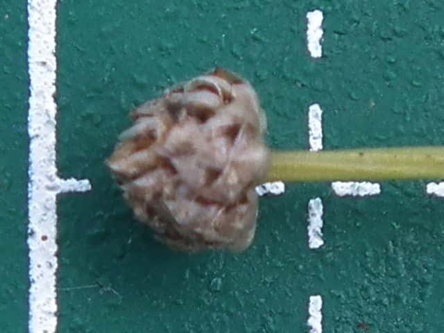| ▼花苞と萼に包まれた雄花。 | ▼萼に包まれた雄花。 | |