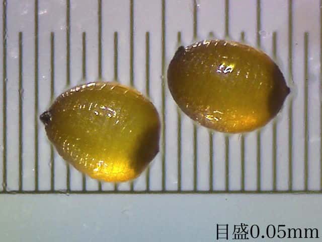 | ▼種子は長さ約0.4mm | ▼表面に横長の蜂の巣状の模様がある。 | |