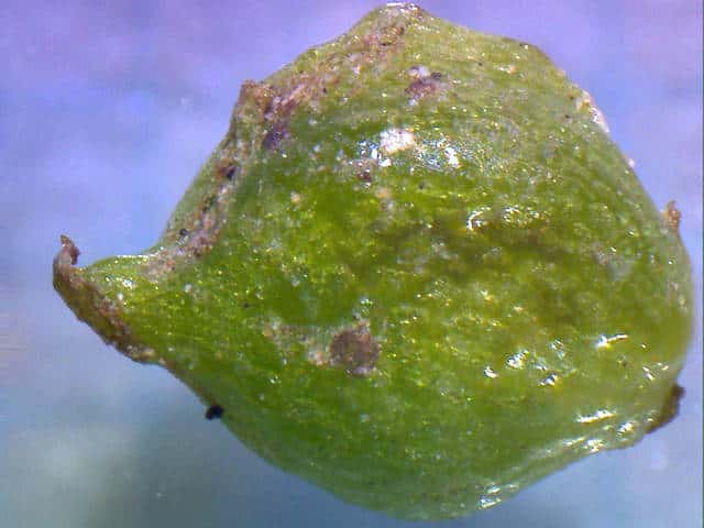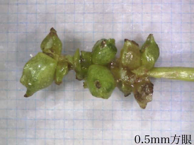 | ▼若い果実は長さ1.5〜2mm。 | ▼数個の低い突起がある。 | |