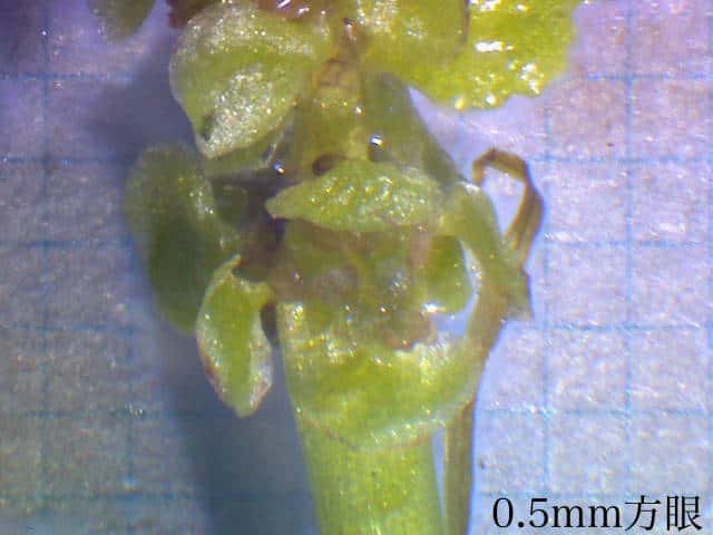 | ▼殖芽。 | ▼沈水葉は長さ約5cm。 | |