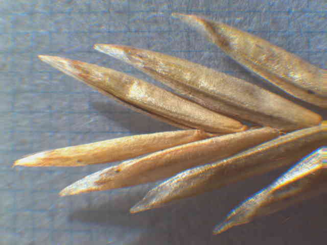 | ▼小花は長さ約6mm。 | ▼第2苞穎は長さ約7.5mm。 | ▼護穎は長さ約6.5mm、内穎は約6mm。 |