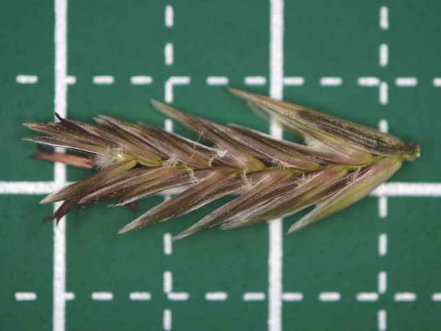| ▼小穂は長さ約15〜20mm。 | ▼第2苞穎は長さ約8mm、11小花ある。 | |