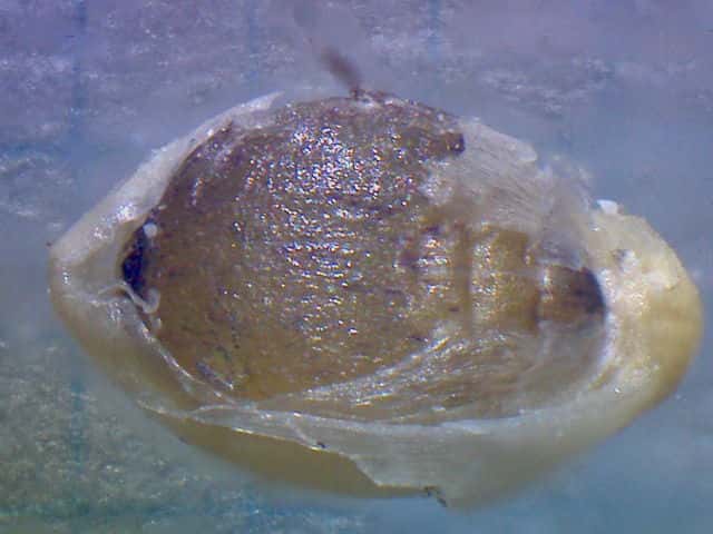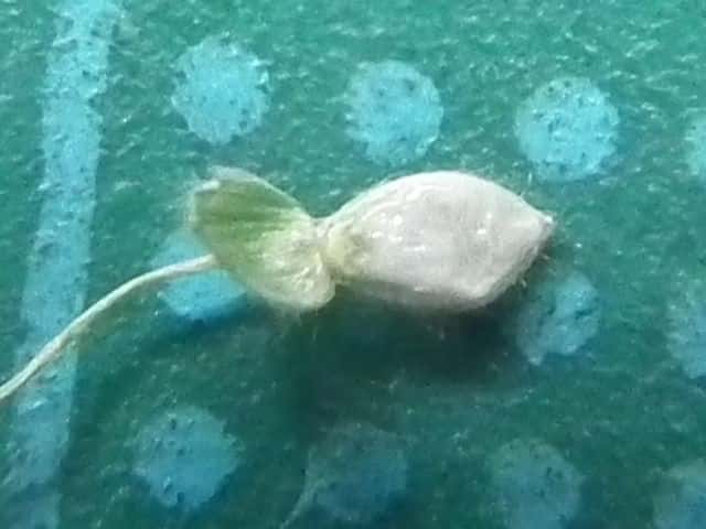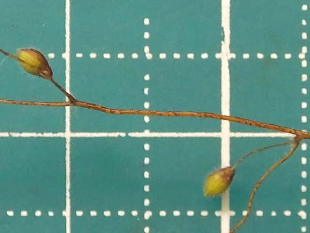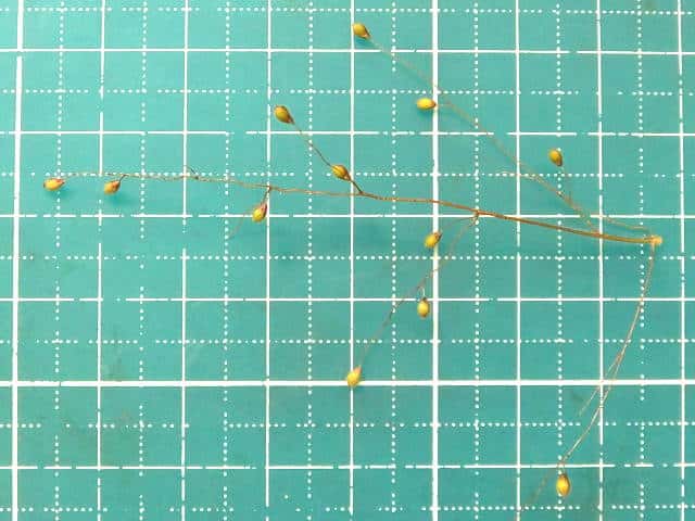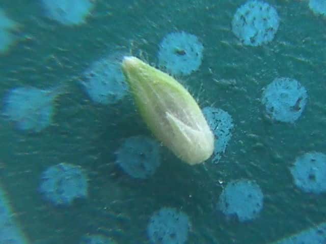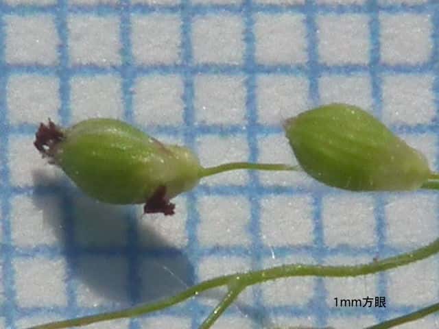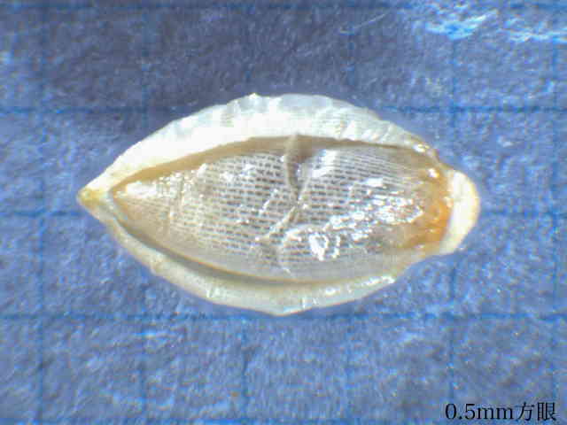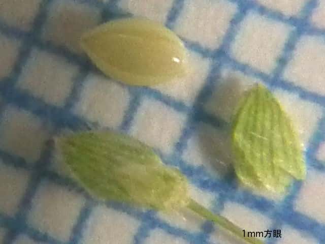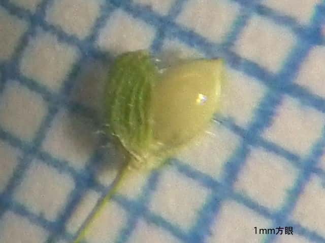 | ▼護穎を除くと中に穎果がある。 | ▼穎果は長さ約1.8mm。 | |