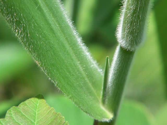 | ▼葉は長さ約10cm。 | ▼細かい毛が密生する。 | ▼葉の裏面にも細かい毛が密生する。 |