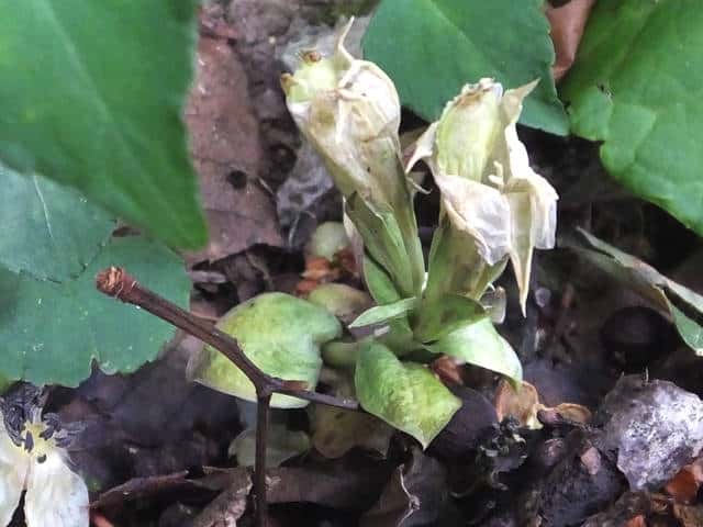 | ▼2018年5月24日 果実殻 島根 | ▼果実の先端が開き、種子が全て出たあと。 | ▼果実は上部の開いた部分で、下部は果柄。 |