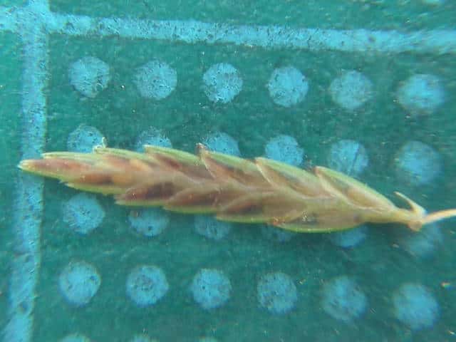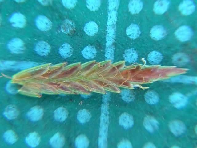 | ▼小穂は長さ約11mm。 | ▼花を15〜16個つけている。 | |