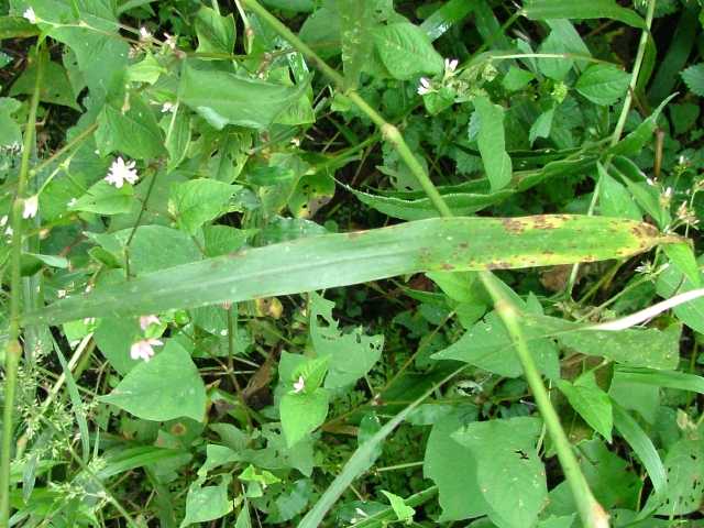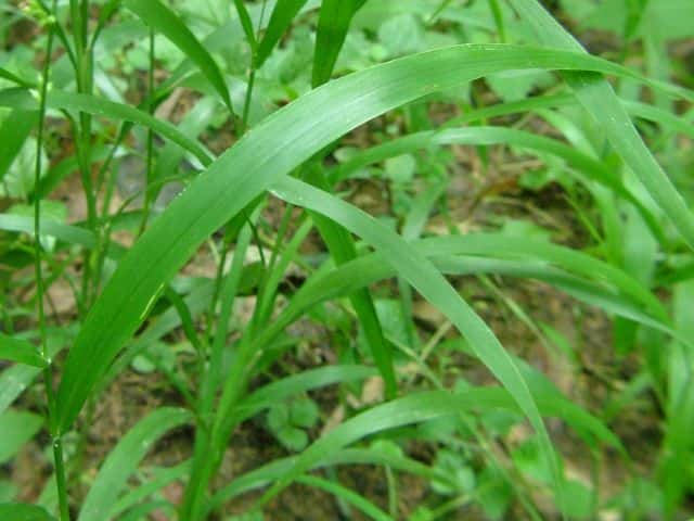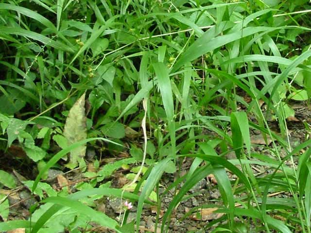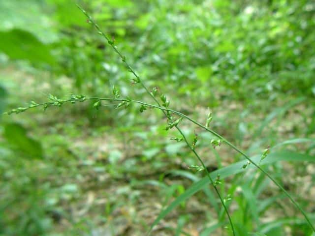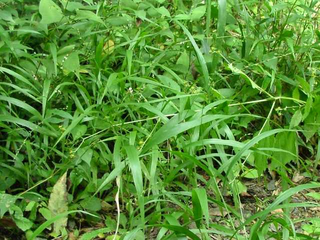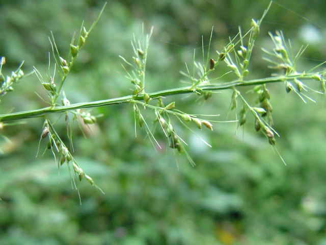 多年草 関東以西〜九州の林地の林床に生育する。根茎は匍匐し長さ20〜30cm、径3〜5mm、節間は短く鱗片をつけ、匍匐根茎を伸ばして繁殖する。茎は高さは50〜100cm、直立するがやや軟弱、平滑・無毛。葉は長さ20〜35cm、幅10〜17mm、薄質、基部はせばまり先は次第にとがり無毛、縁だけざらつく。葉舌はきわめて短く縁毛がある。葉鞘は平滑。花序は長さ10〜30cm、長さ5〜20mmほどの枝を出して小穂をつけ、小穂の基部に小枝の変形した芒(剛毛)を伴う。小穂は卵形、突頭、長さ2.2〜2.8mm、平滑・無毛。第1苞穎は長さ1.5mm、3脈、第2苞穎は2mm、5脈、第3穎は小穂と同長、5脈、護穎と内穎はやや堅く、光沢がある。花期は9〜10月。(日本イネ科植物図譜) 学名は、Setaria chondrachne イネ科エノコログサ属 |
