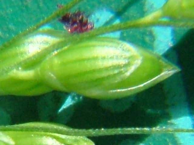 | ▼第2苞穎は長さ2mmで5脈ある。 | ▼第1苞穎は長さ1.5mmで3脈、第3穎は小穂と同長で5脈。 | |