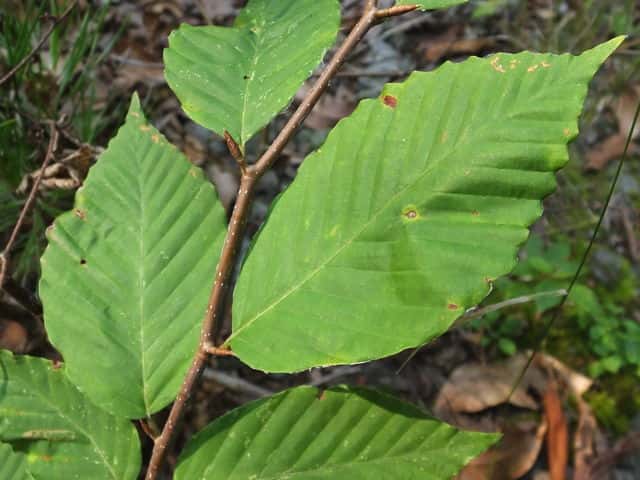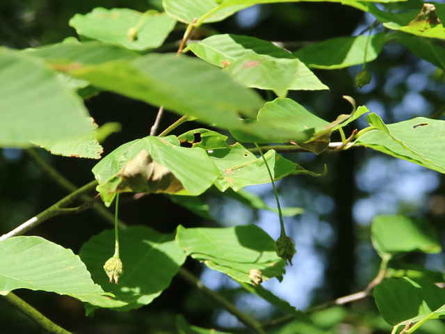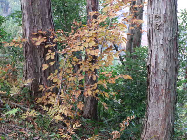 よく似たブナは葉の葉脈が7〜11対、果実は上を向いてつき、殻斗が大きい。