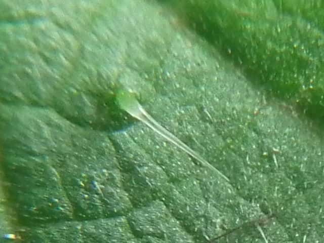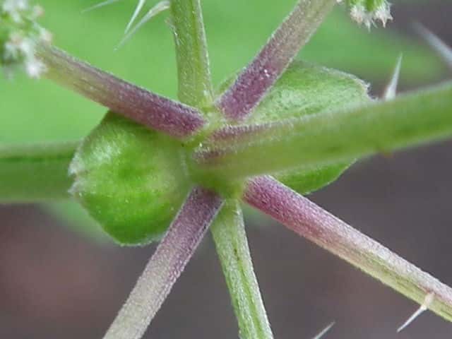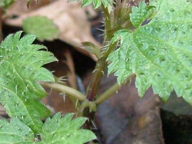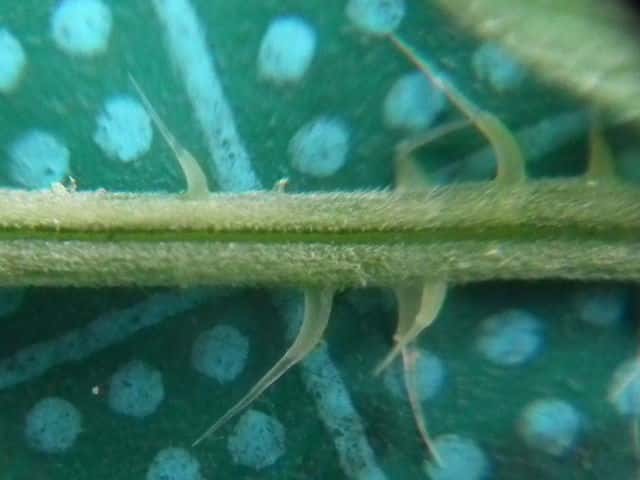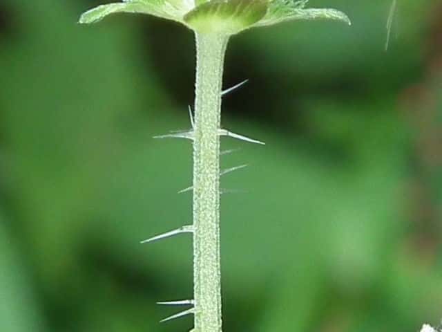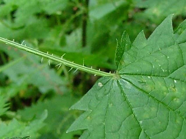 | ▼裏面に刺毛や短毛がある。 | ▼葉柄の刺毛。 | ▼茎に刺毛がある。 |