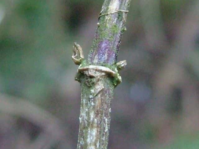 | ▼合着した托葉 | ▼葉痕が見える。 | |