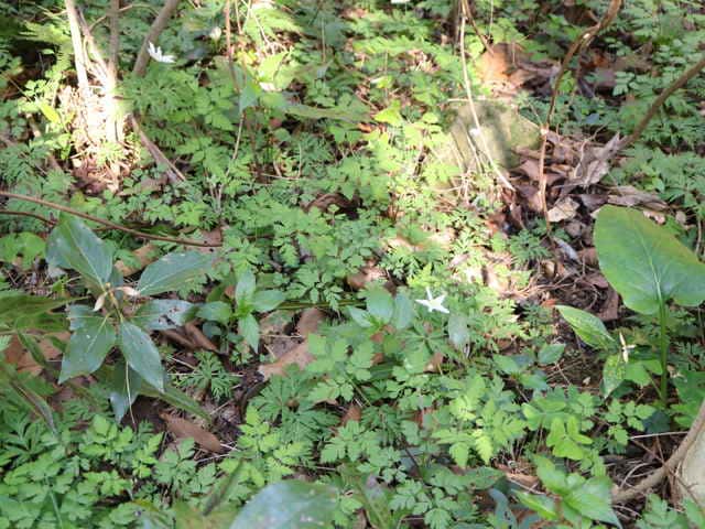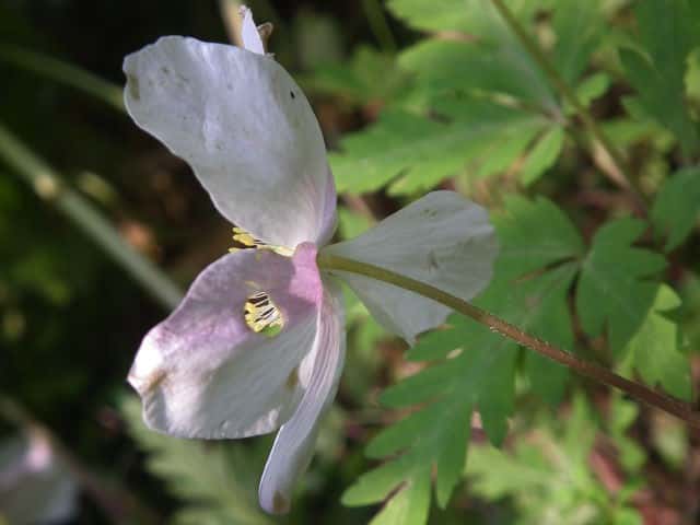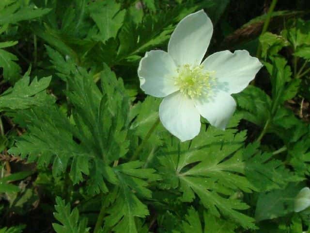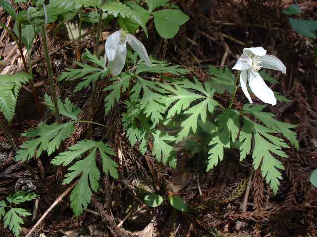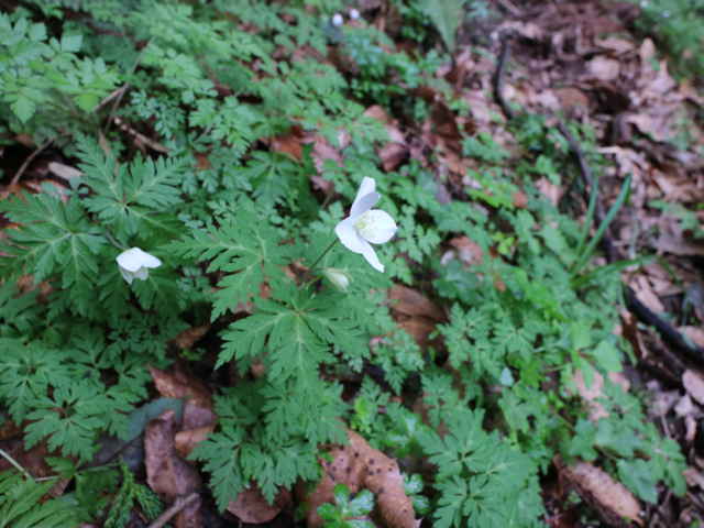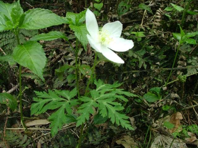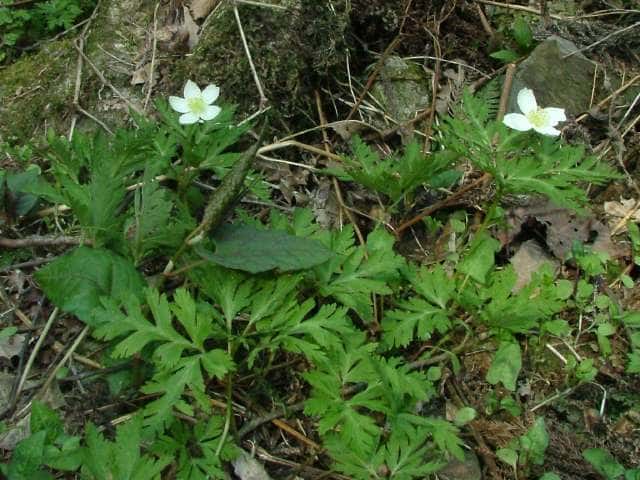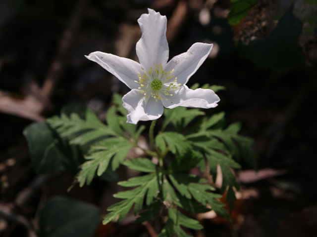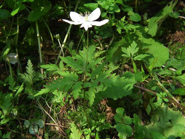 | 多年草 本州〜九州の山麓の草地や林内などに生える。高さ20〜25cm。根生葉は地下茎の先につくが、花茎の基部にはつかない。茎葉は3個輪生し、3出複葉で、長い柄がある。小葉は羽状に深裂する。花は1個つき、直径3〜4cm。花弁はなく、白い5〜6個の萼片が花弁のように見える。萼片の裏面は紫色を帯びることがある。多数のそう果ができ、球形に集まってつく。花期は4〜5月。(野に咲く花) 学名は、Anemone nikoensis キンポウゲ科イチリンソウ属 萼の多いものを品種としてヤエイチリンソウと呼ぶ。 花がよく似たニリンソウは、3輪生した葉に葉柄がない。 |