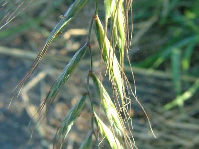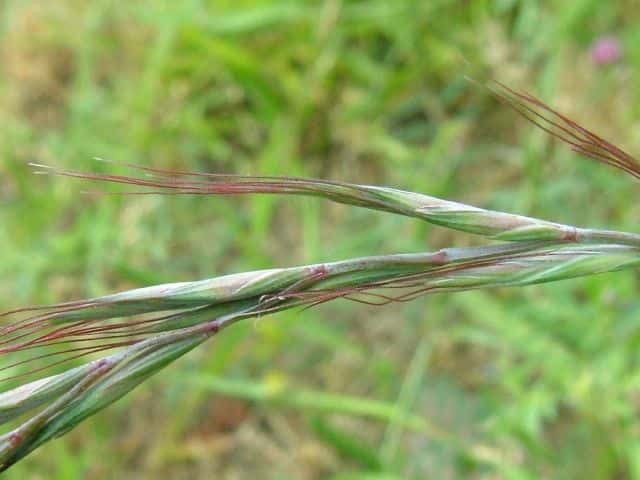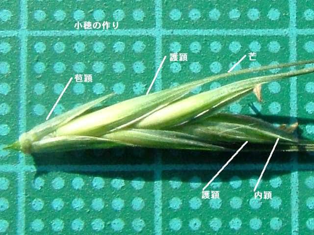 | ▼小穂は約2cm。外穎に長い芒がある。 | ▼小穂・小花のつくり。 | ▼外頴は無毛。 |