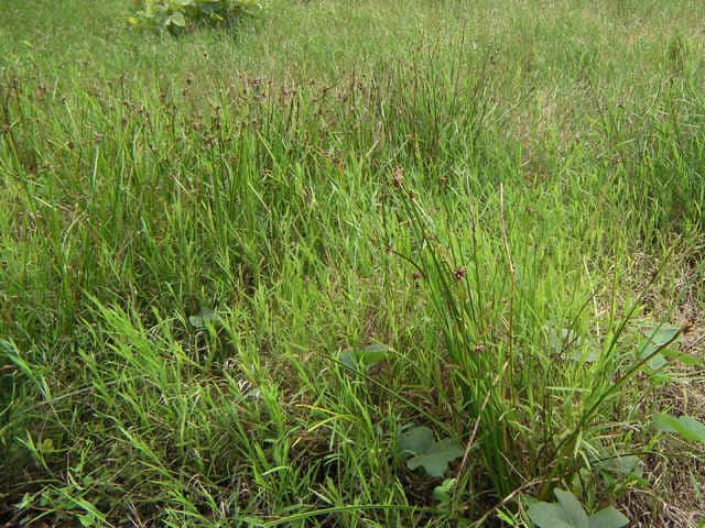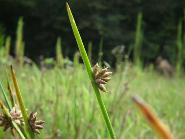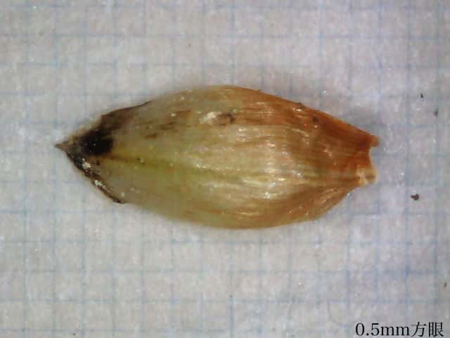 | ▼茎の先に短い苞がつく。 | ▼小穂は長さ約1.8mm。 | ▼果実は長さ約2mm。 |