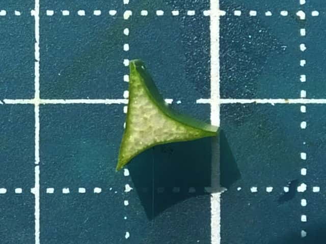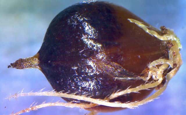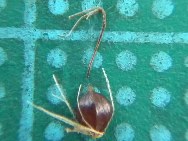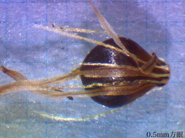 | ▼果実は長さ約2.2mm。 | ▼茎は鋭3稜形。 | ▼茎の横断面。 |