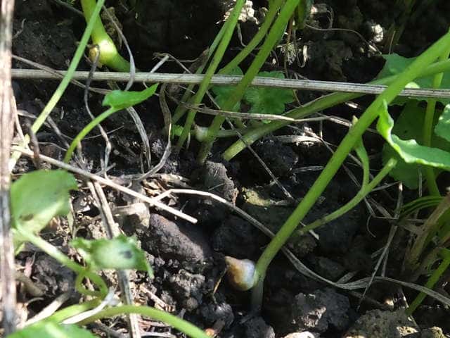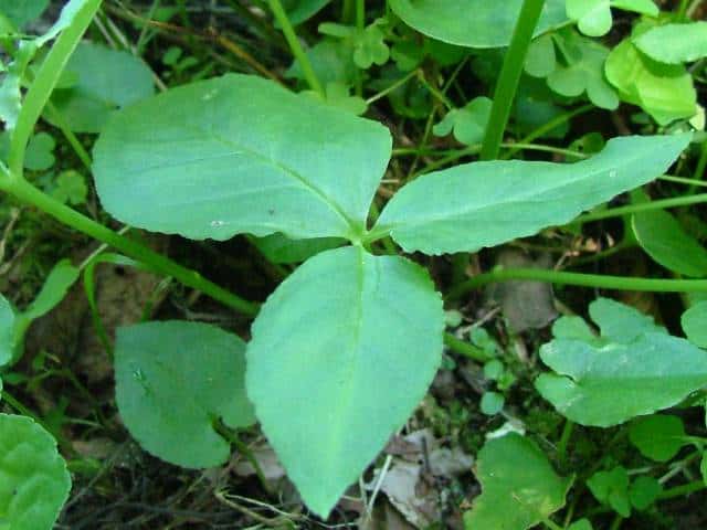 | ▼葉は3小葉、小葉の基部に珠芽がつく。 | ||
