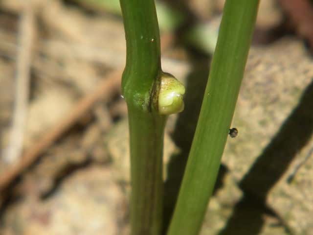 | ▼葉柄下部にある珠芽(ムカゴ)。 | ||