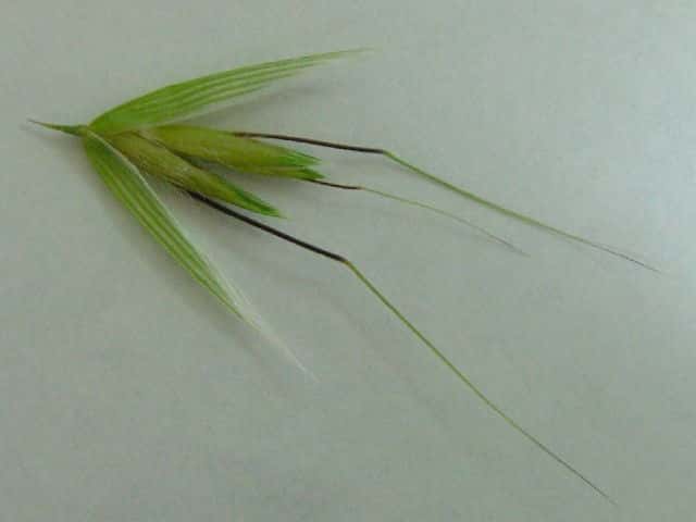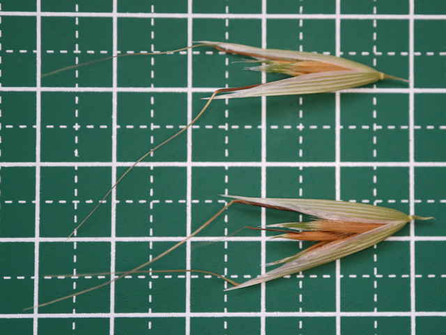 | ▼3小花がある小穂。 | ▼2小花の小穂。 | ▼芒は護穎の背面から出て長さ約4cm。 |