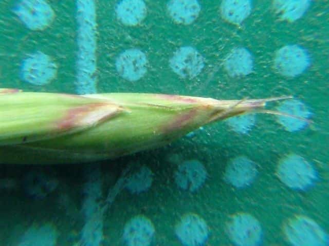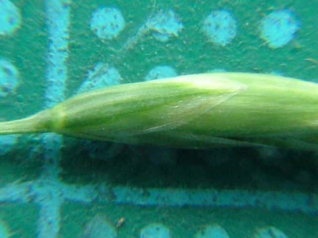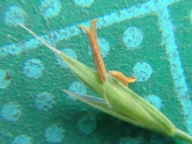 | ▼護穎の背から芒が伸びる。 | ▼護穎と内穎は同長。 | |