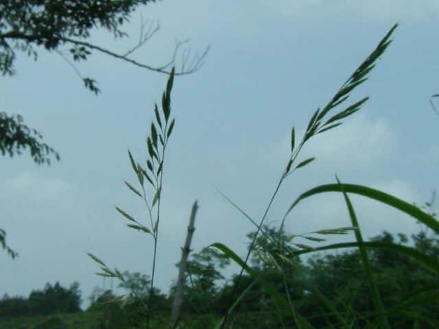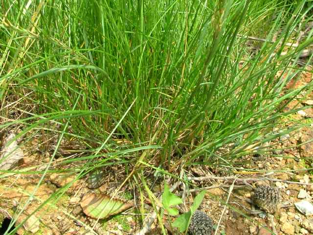 | 1〜越年草 ヨーロッパ及び西アジア原産で、北海道〜本州中部の畑地・路傍などに生育する。茎は直立し平滑・無毛。高さ50〜60cm。葉は長さ10〜25cm、幅5〜7mm。基部が丸く、多少ざらつくが無毛。葉舌は厚く暗褐色、長さ1mm。葉鞘は平滑・無毛。花序は狭長な円錐形、長さ10〜20cm、先はやや下垂する。花軸の各節より1〜2個の長さ2〜5cmほどの枝を出し、3〜5個の小穂をつける。花軸や枝はざらつき、小穂は長さ10〜13mm、5〜7小花からなり無毛。第1苞穎はやや鋭頭、長さ4mm、3脈、第2苞穎は鈍頭、長さ5mm、3〜5脈。小花は長さ6〜7mm、護穎は5〜7脈、2歯があり歯間から芒を出し、芒は8mm。まれに短芒か無芒。内穎は護穎と等長。花期は7月。(日本イネ科植物図譜) 学名は、Bromus secalinus イネ科スズメノチャヒキ属 |