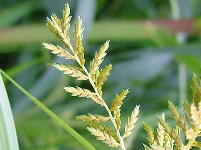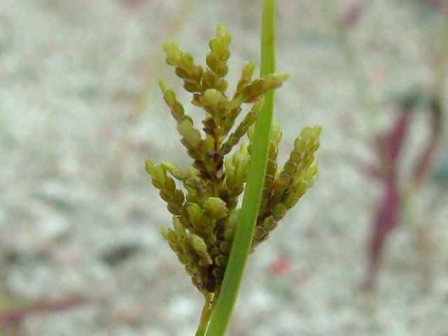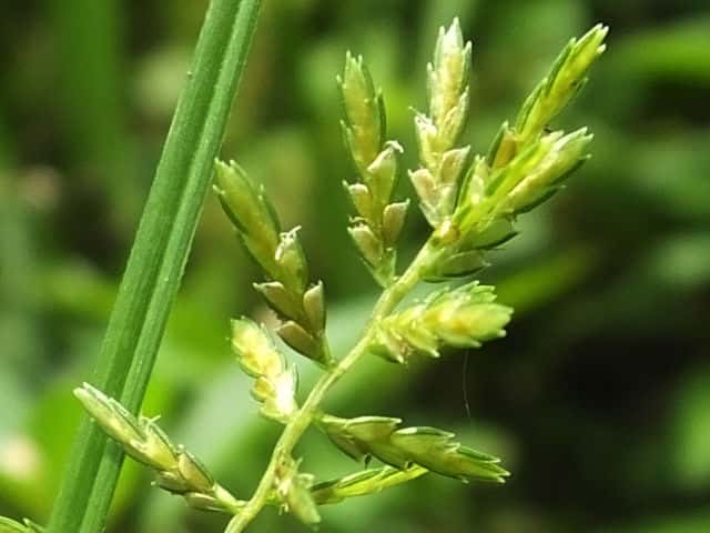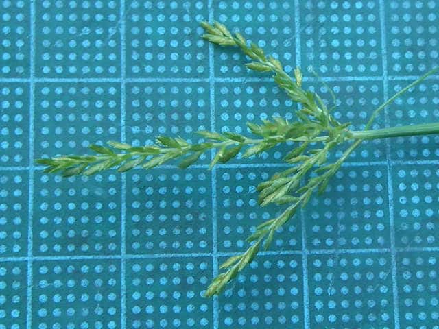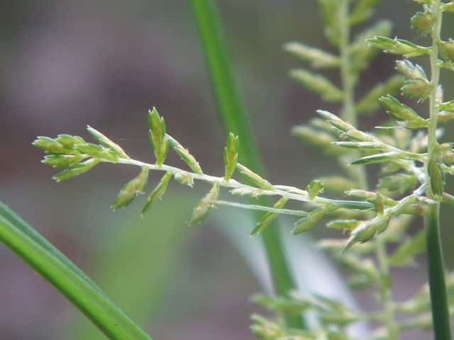 | ▼2015年8月19日 東出雲 | ▼花序枝が分枝していない個体。 | ▼小穂は開出する。 |